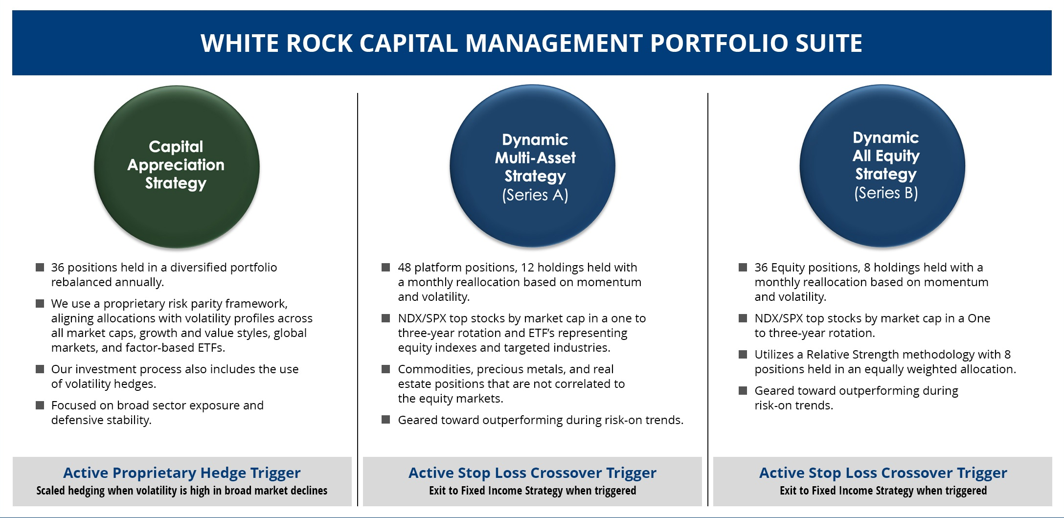 White Rock Capital Management provides asset management and sub-advisory services through Hansen & Associates Financial Group, Inc., an SEC registered investment advisory firm. Asset management and sub-advisory consulting services are offered through White Rock Capital Management LLC. Past performance is not indicative of future results. No investment is risk-free. Therefore, different types of investments involve varying degrees of risk, and there can be no assurance that the future performance of any specific investment, investment strategy, or product (including the investments and/or investment strategies recommended or undertaken by White Rock Capital Management), or any non-investment related content, made reference to directly or indirectly will be profitable, equal any corresponding indicated historical performance level(s), be suitable for your portfolio or individual situation, or prove successful.